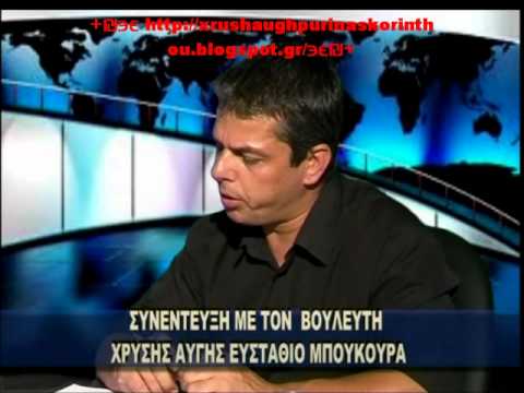 Συνέντευξη του συναγωνιστλη της Χρυσής Αυγής κ.Ευστάθιο Μπούκουρα στο τοπικό κανάλι της Κορίνθου Ηλέκτρα την Παρασκευή 20/7/2012Ο συναγωνιστής; της Χρυσής Αυγής κ.Ευστάθιος Μπούκουρας,σε μια αποκαλυπτική συνέντευξη αναφέρθηκε στα χρόνια προβλήματα που αντιμετωπίζει η χώρα μας αλλά και στα τοπικά προβλήματα του νομού μας.